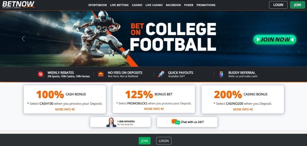 1. BetNow – Offshore US sportsbook with parlays and casino extras